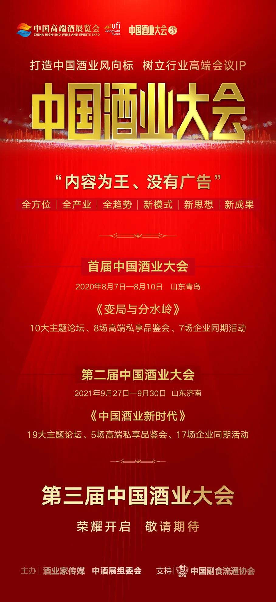 中酒展组委会相关负责人表示,中国酒业大会的宗旨是内容为王,没有广告,自2020年首届中国酒业大会成功举办以来,已连续两年成功举办,即将开启的第三届中国酒业大会将会全方位、全产业、全趋势的聚焦中国酒业。