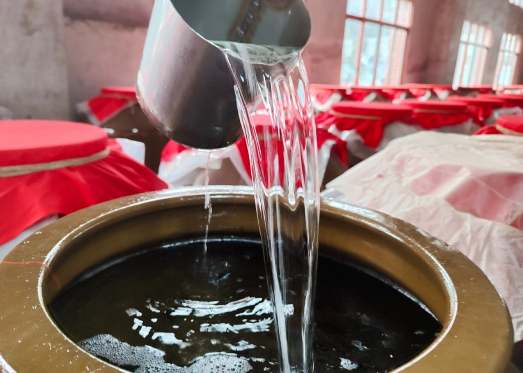一般酱香新酒酒体无色透明,而陈酒是带微黄色,越陈的酱酒越浓且越清晰。需要注意的是,自然的黄色才是好。大曲酱香微黄,麸曲酱香颜色要更深一些。